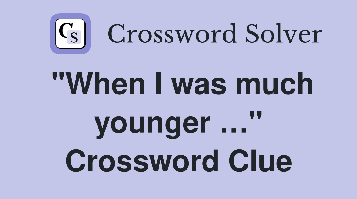quot When I was much younger quot Crossword Clue Answers Crossword Solver
