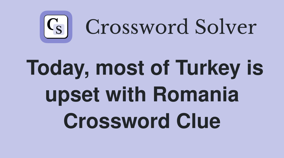 Today most of Turkey is upset with Romania Crossword Clue Answers