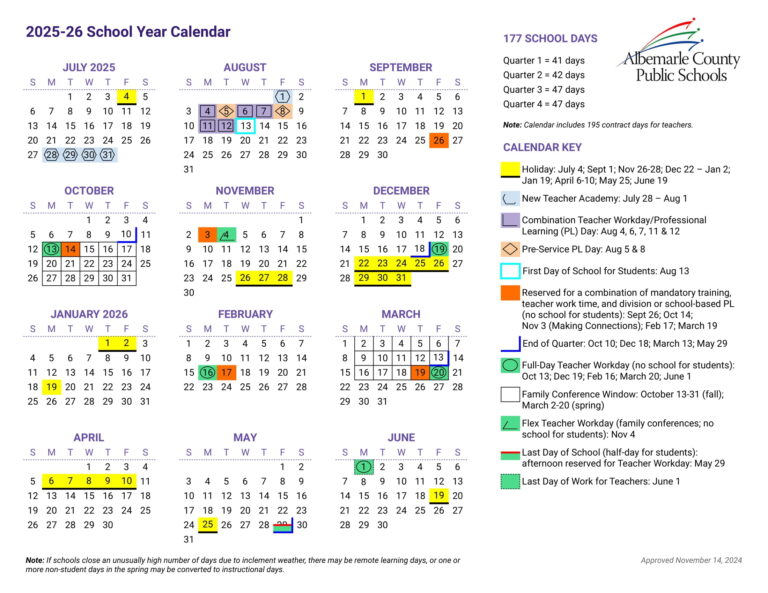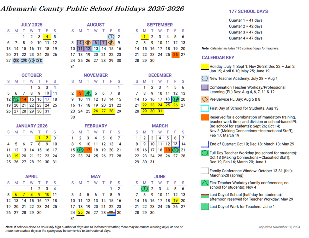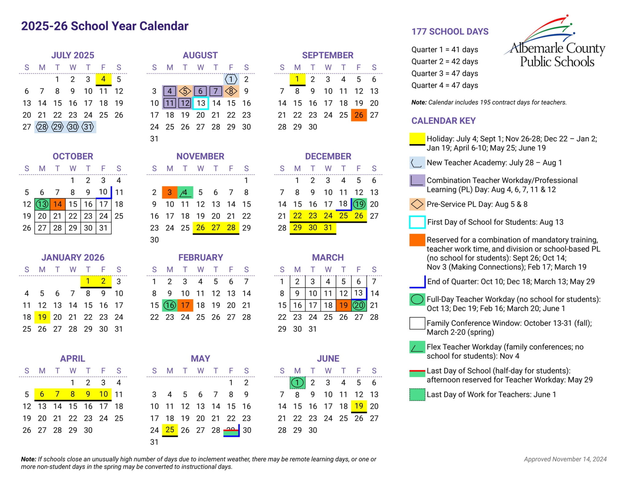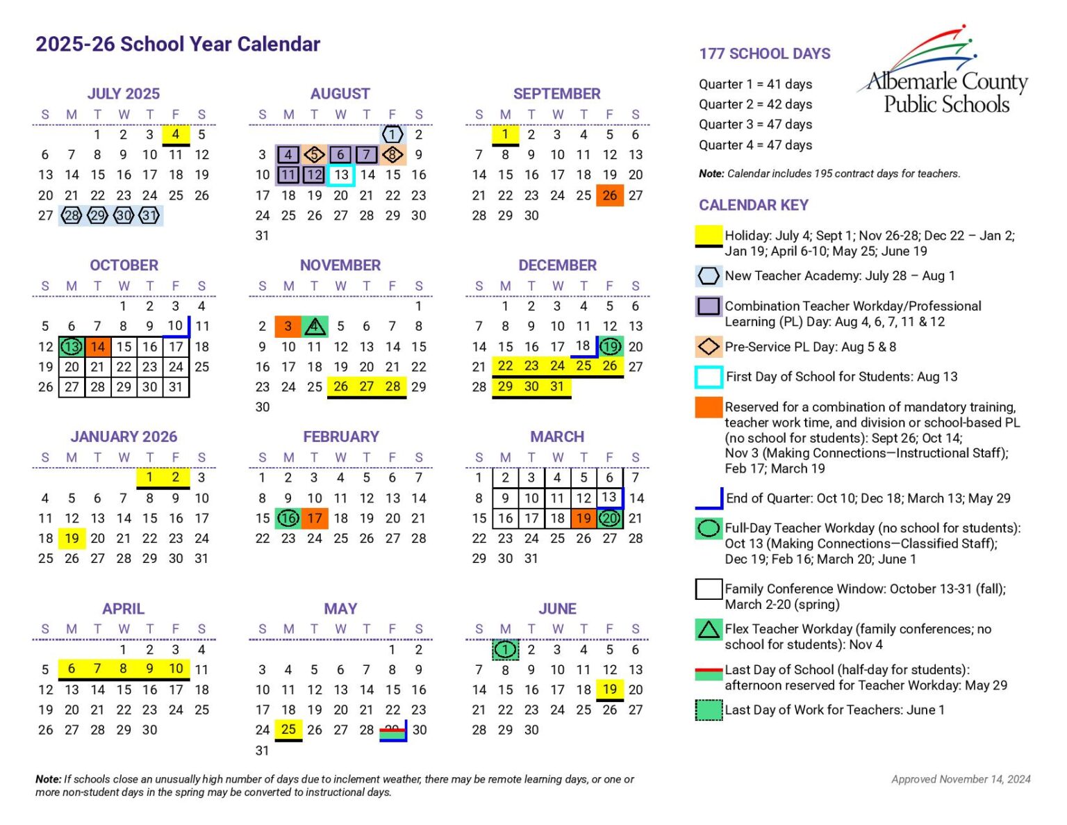 2025 26 School Year Calendar Albemarle County Public Schools Claude