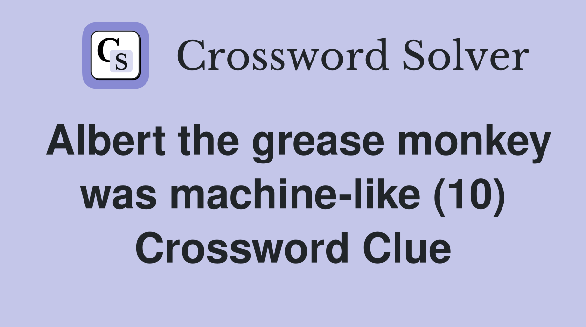 Albert the grease monkey was machine like (10) Crossword Clue Answers