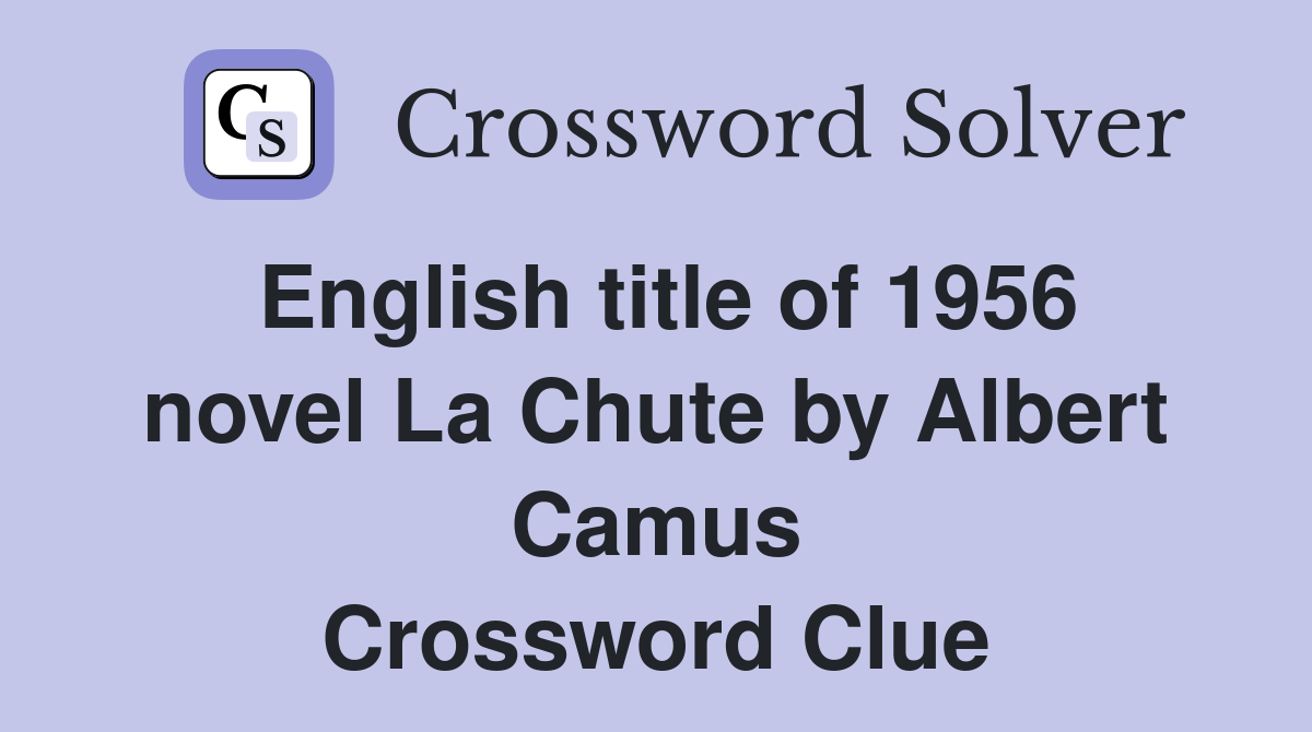 English title of 1956 novel La Chute by Albert Camus Crossword Clue