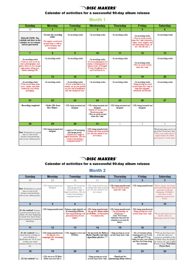 90 Day Album Release Calendar PDF Compact Disc Spotify