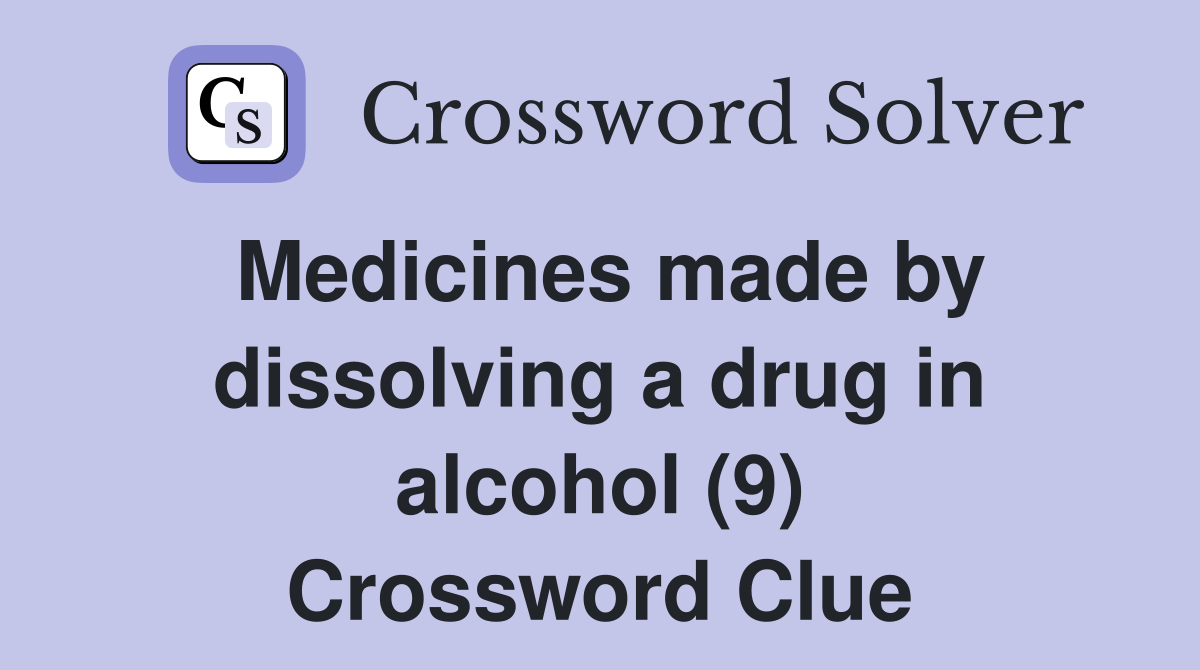 Medicines made by dissolving a drug in alcohol (9) Crossword Clue