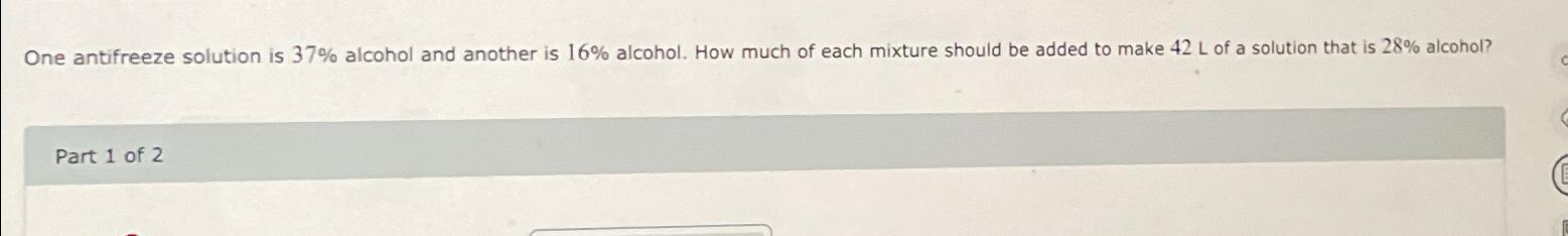 Solved One antifreeze solution is 37% alcohol and another Chegg com