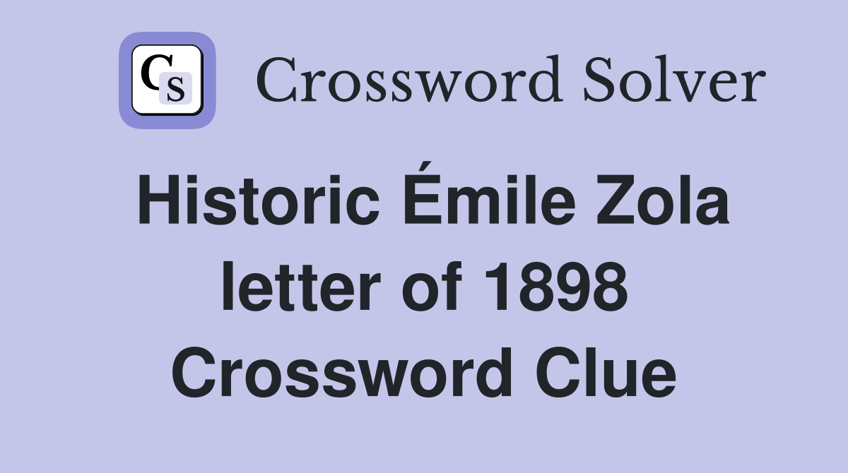 Historic Émile Zola letter of 1898 Crossword Clue Answers Crossword