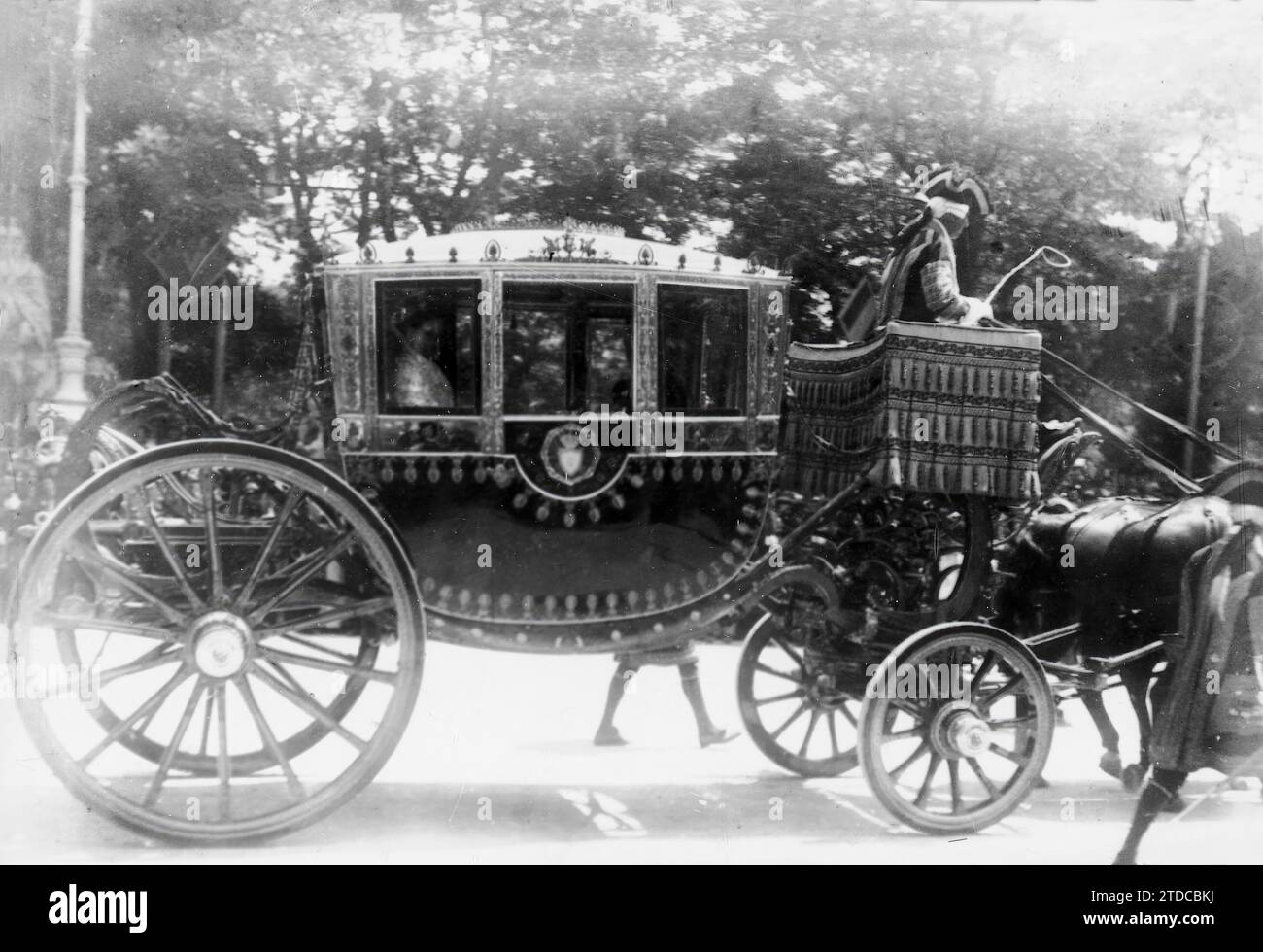 05/31/1906 Queen Victoria Eugenia seated in the carriage that took her