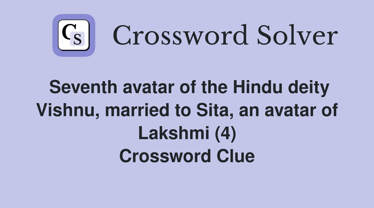 Seventh avatar of the Hindu deity Vishnu married to Sita an avatar of