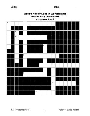 Fillable Online Alice #39 s Adventures in Wonderland Vocabulary Crossword