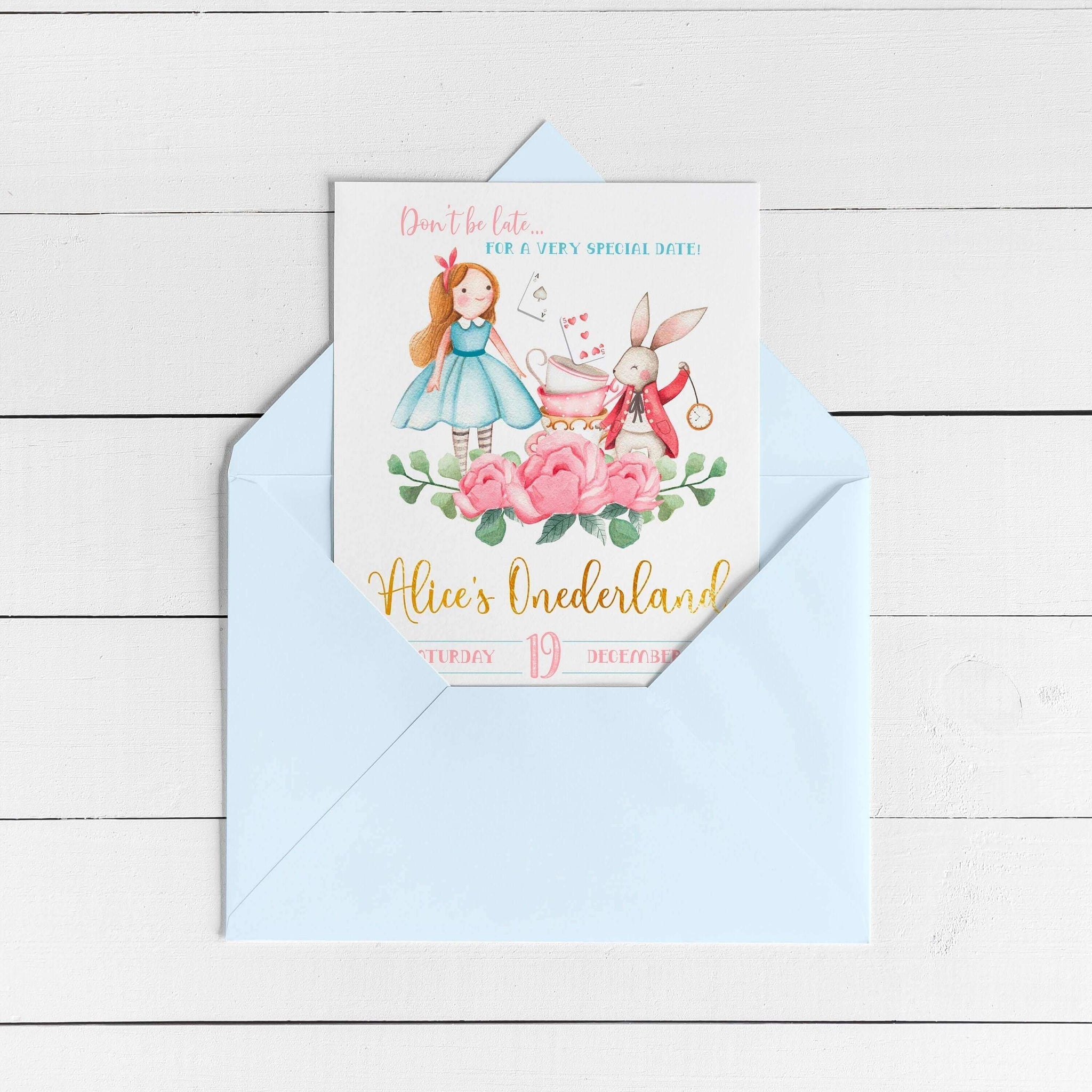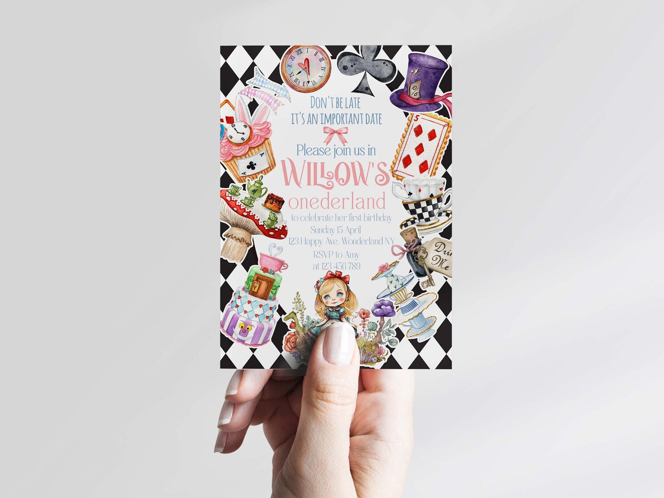 Alice in Wonderland Birthday Invitation Editable Template Onederland