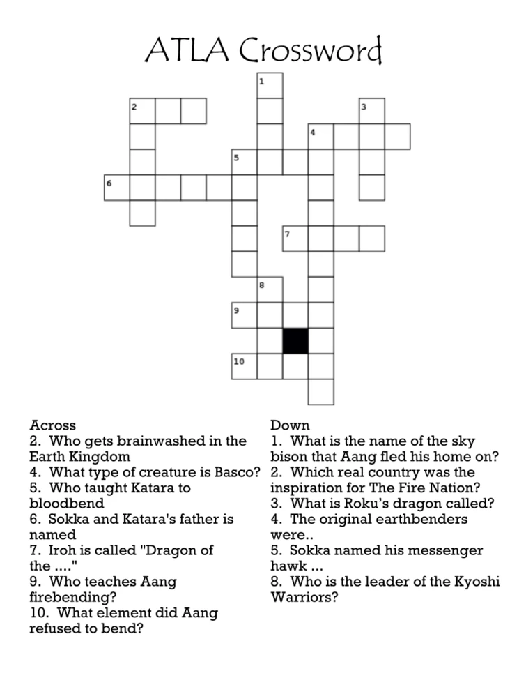 Avatar The Last Airbender Protagonist Crossword prntbl