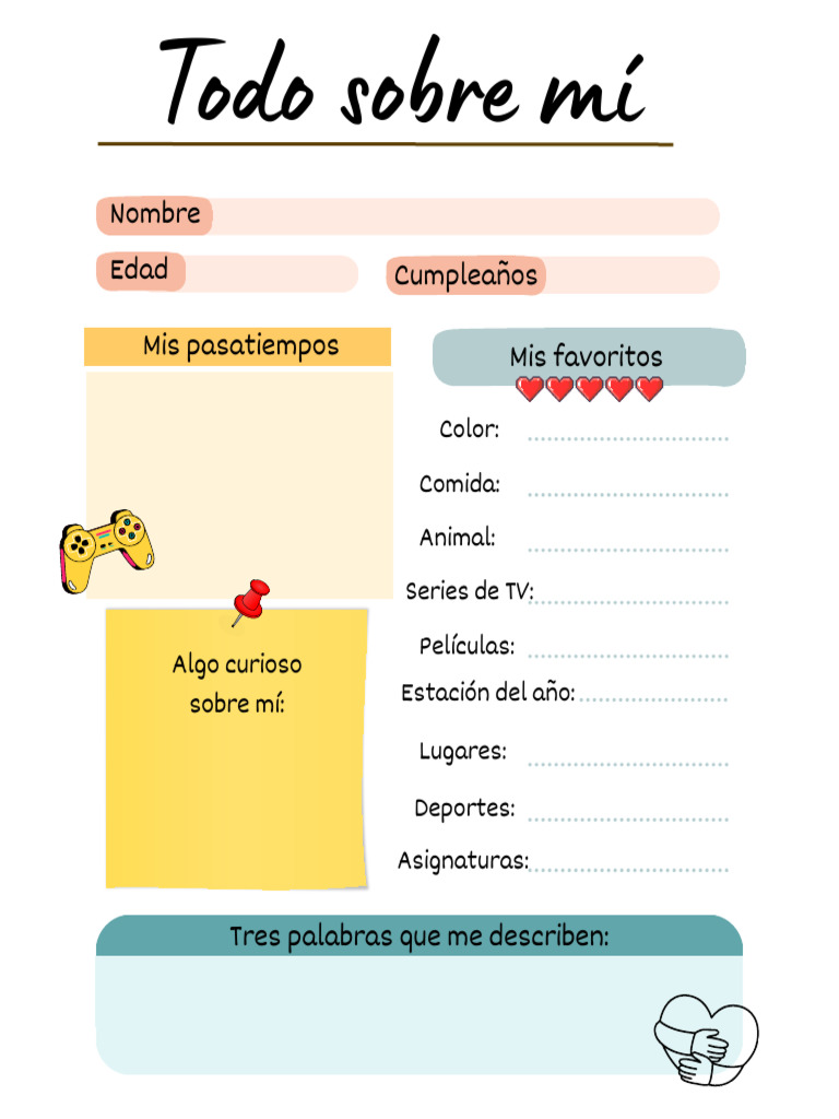 All about me free spanish printable Artofit