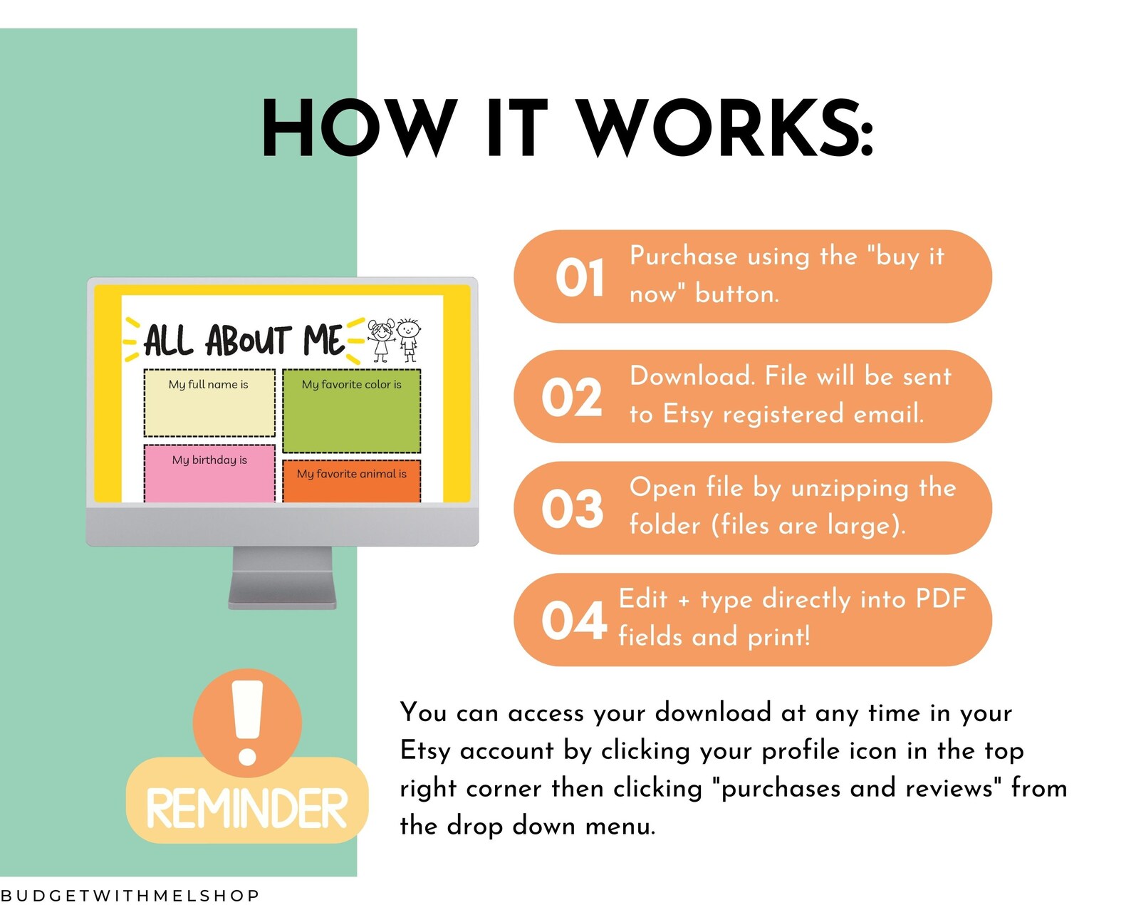 All About Me Template for Kids Preschool Worksheet First Day Etsy