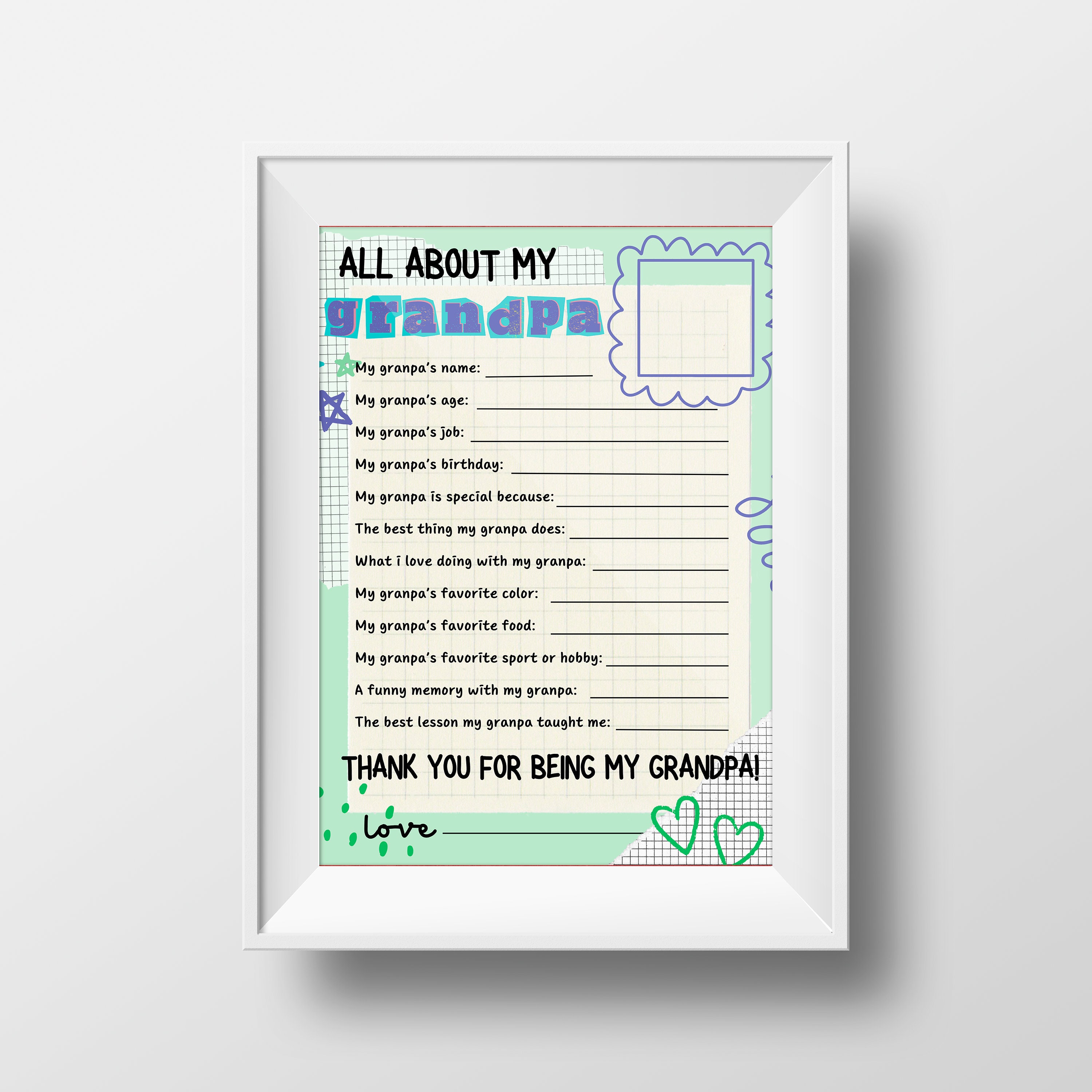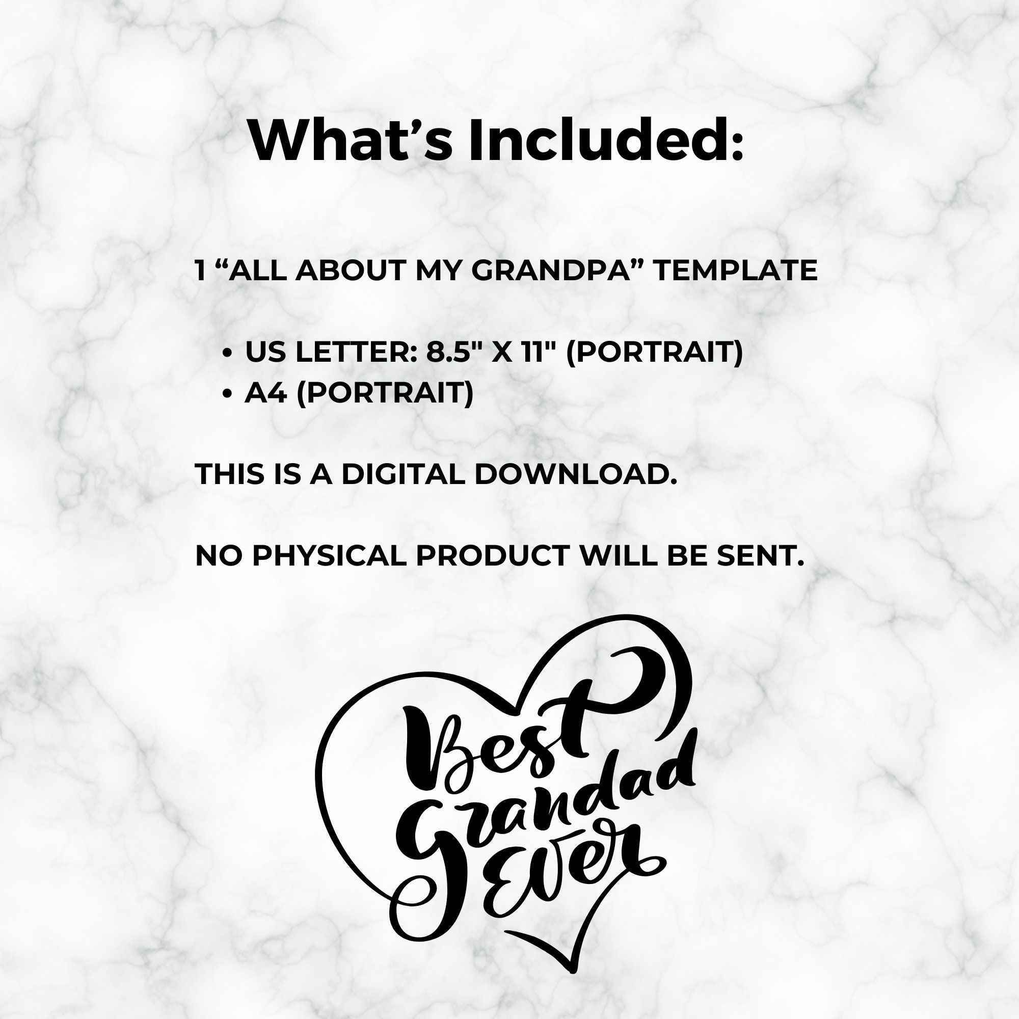 All About My Grandpa Printable Personalized Gift for Grandpa Grandpa