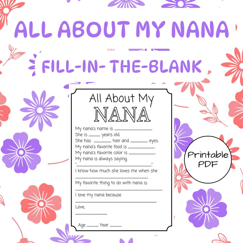All About My Nana Printable: Interview Fill in Card (PDF) Etsy