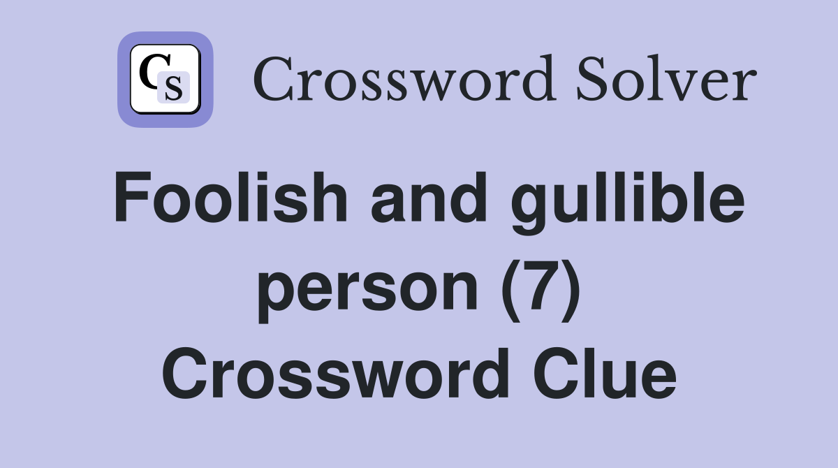 Foolish and gullible person (7) Crossword Clue Answers Crossword Solver
