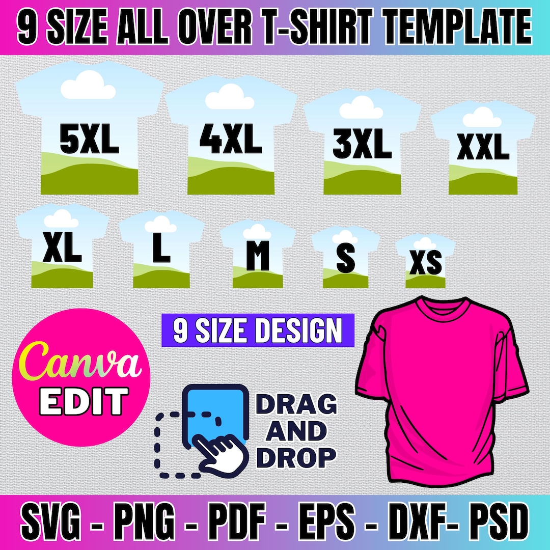 9 Size All Over T shirt Template: Sublimation Design (digital Download