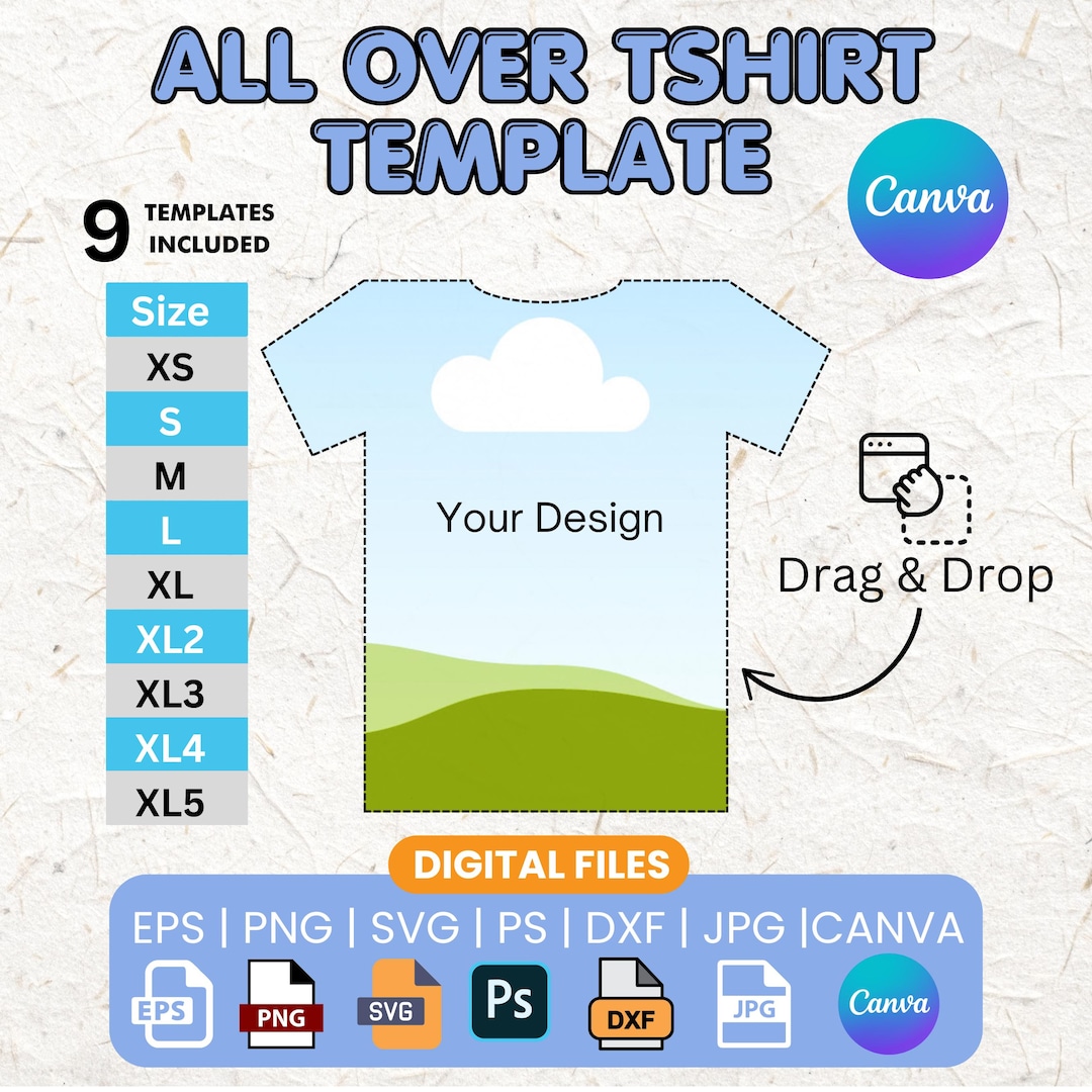 All Over T shirt Sublimation Template: Canva Editable (digital Download