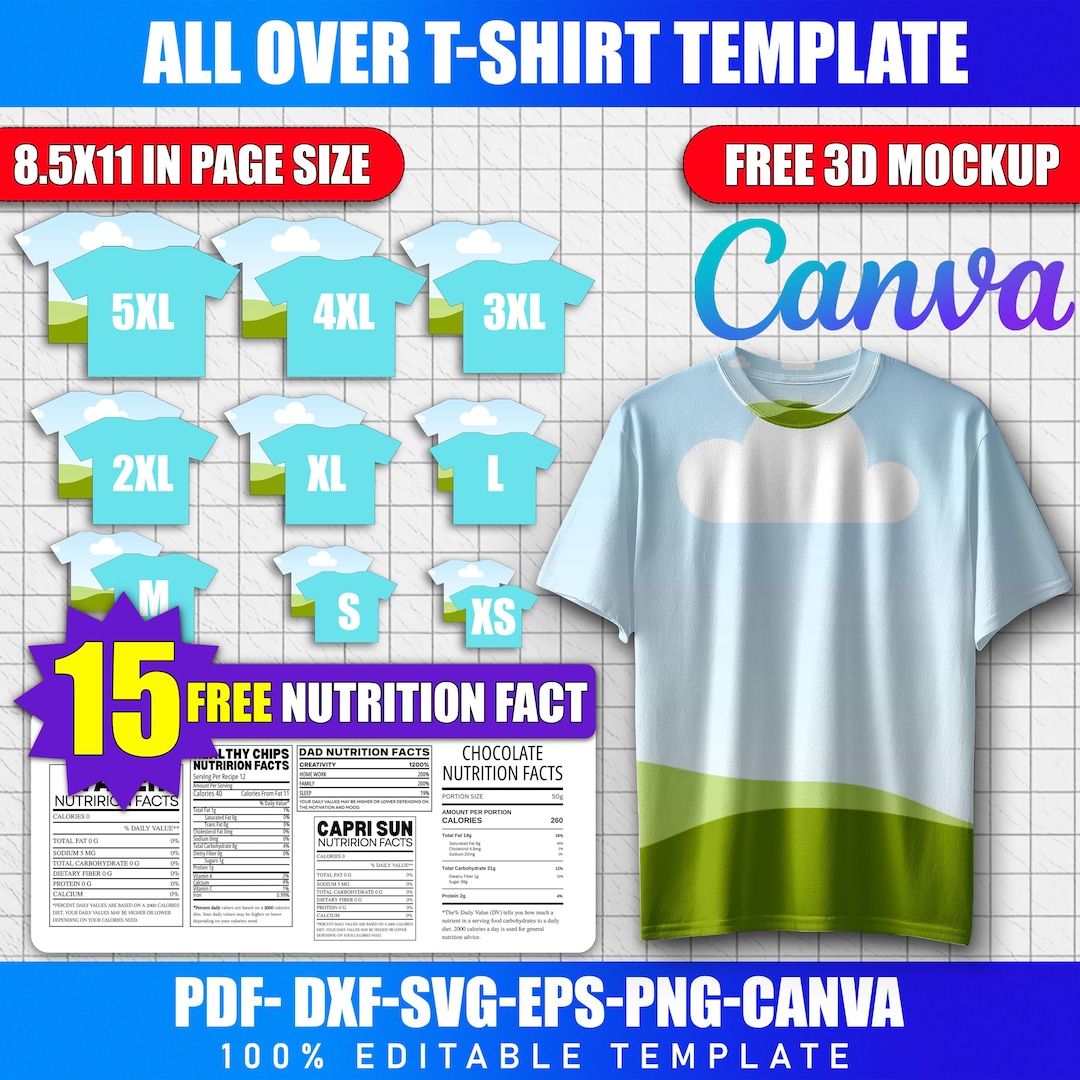 All Over T shirt Template Bundle: Canva Editable T shirt Sublimation
