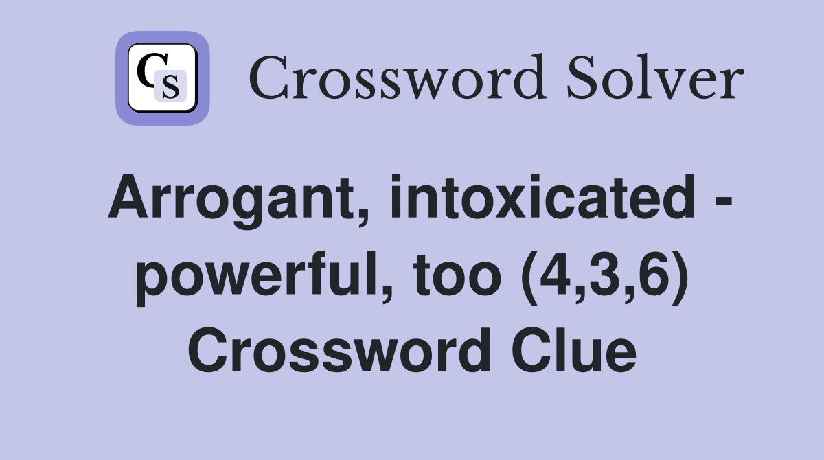 Arrogant intoxicated powerful too (4 3 6) Crossword Clue Answers