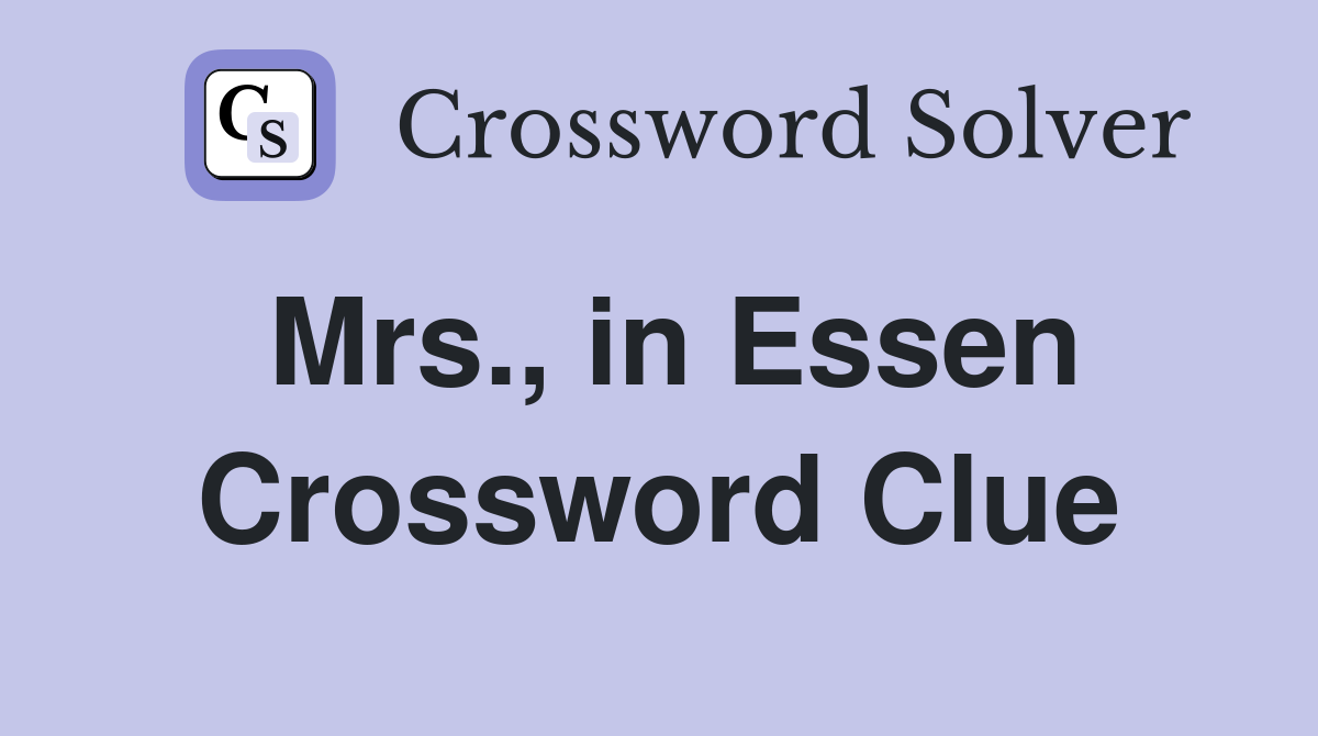 Mrs in Essen Crossword Clue Answers Crossword Solver