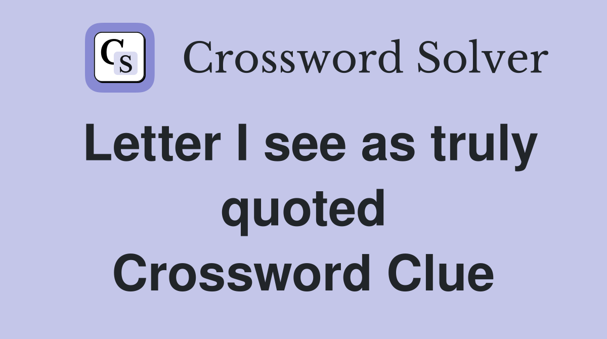 Letter I see as truly quoted Crossword Clue Answers Crossword Solver
