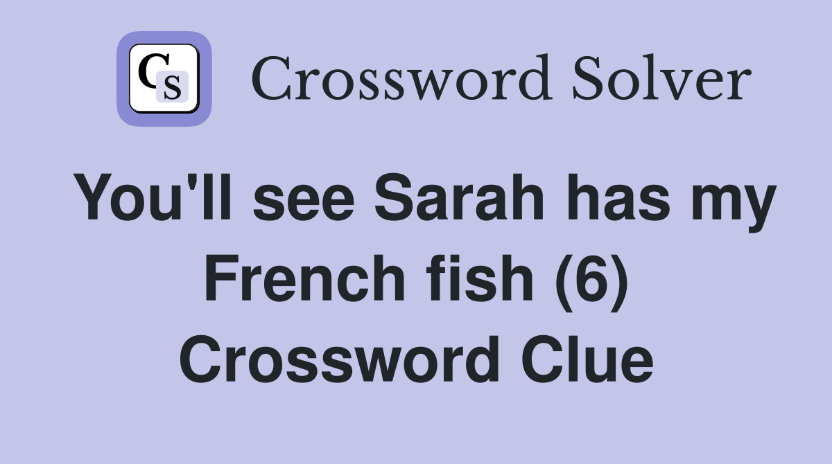 You #39 ll see Sarah has my French fish (6) Crossword Clue Answers