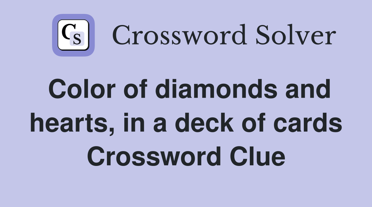 Color of diamonds and hearts in a deck of cards Crossword Clue