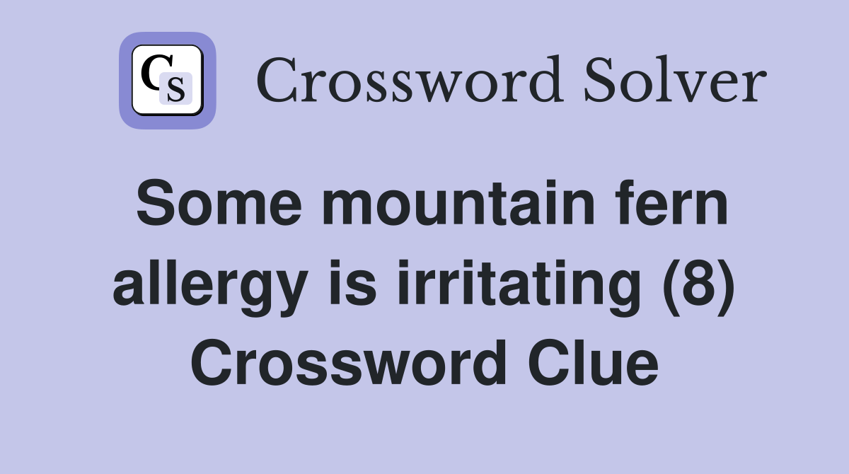 Some mountain fern allergy is irritating (8) Crossword Clue Answers