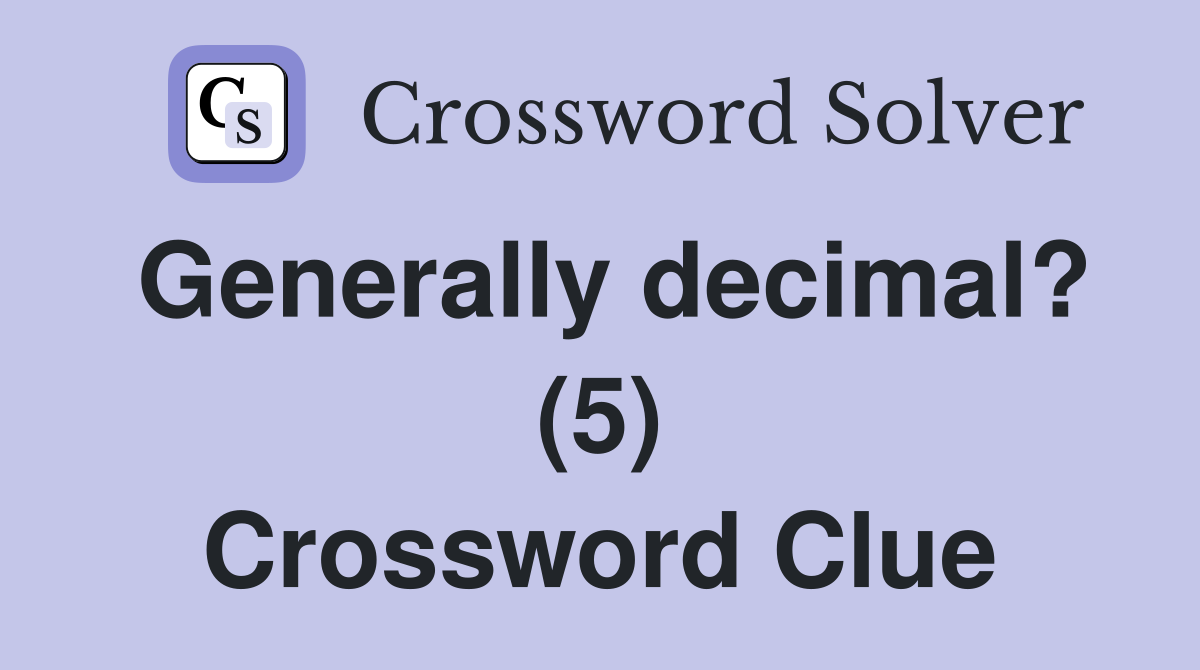 Generally decimal? (5) Crossword Clue Answers Crossword Solver