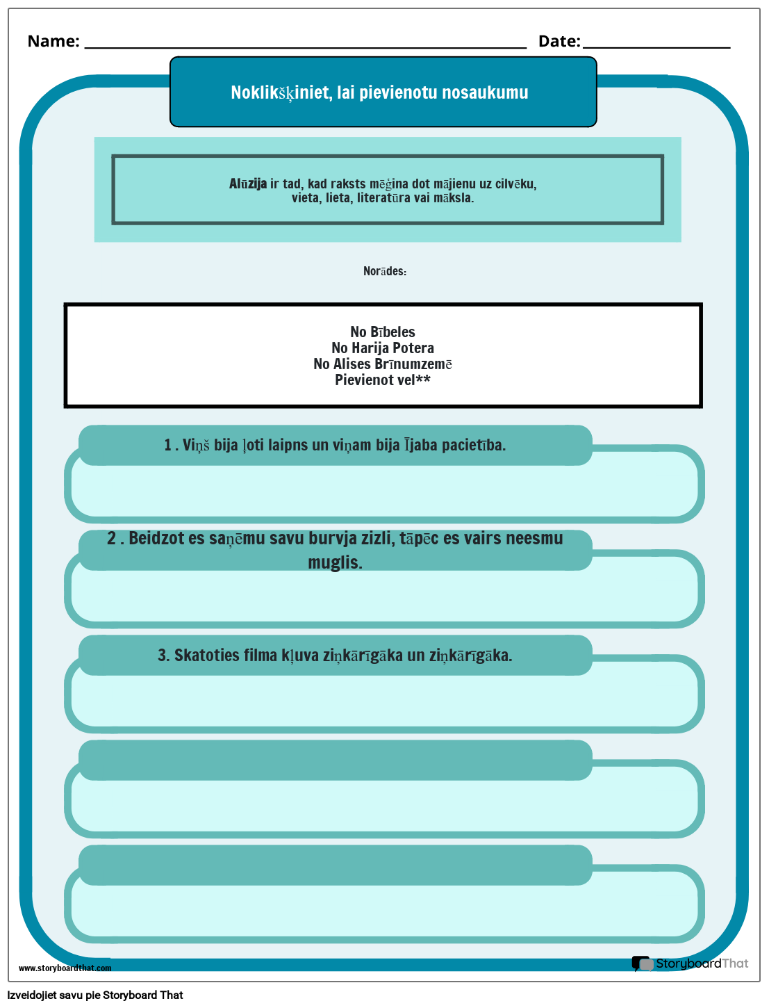 Piemērs un Definīcija Allusion Worksheet Storyboard