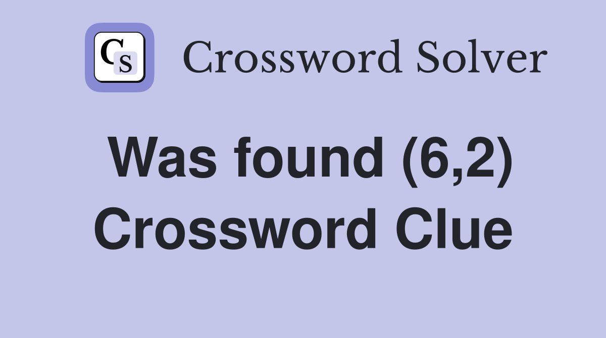 Was found (6 2) Crossword Clue Answers Crossword Solver