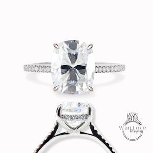 Vintage Engagement Ring Elongated Cushion Cut Moissanite Hidden Halo