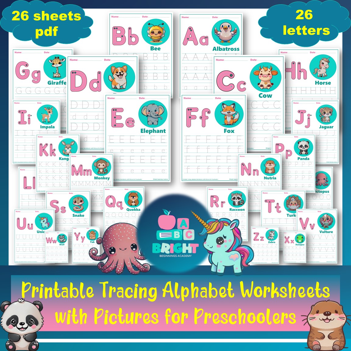 Printable Tracing Alphabet Worksheets with Pictures for Preschoolers