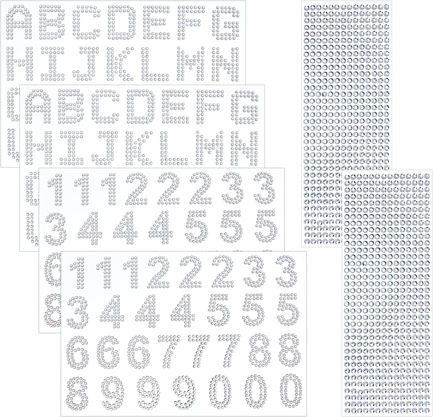 6 Sheets Glitter Rhinestone Alphabet Letter Stickers Number Rhinestone