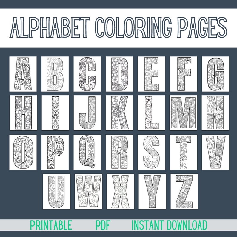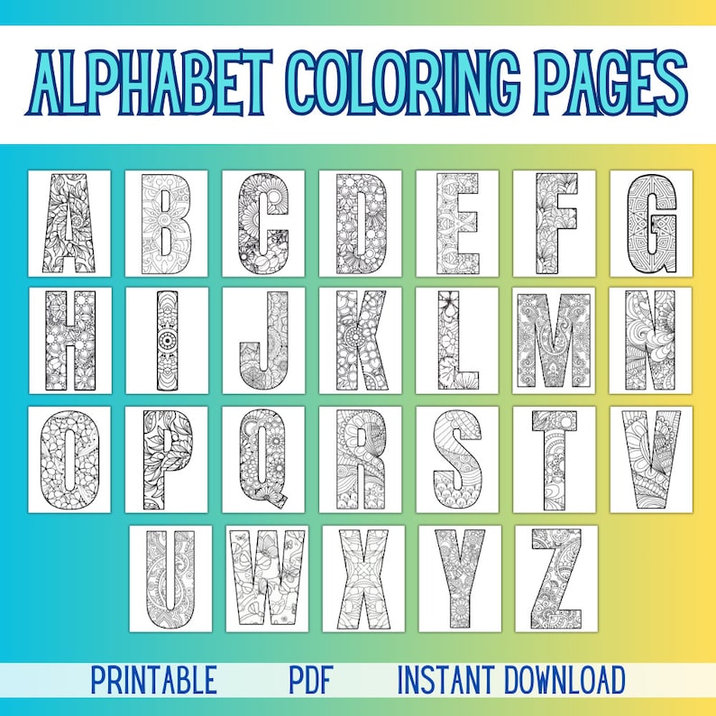 Alphabet Coloring Pages Digital Download A Z Printable Coloring