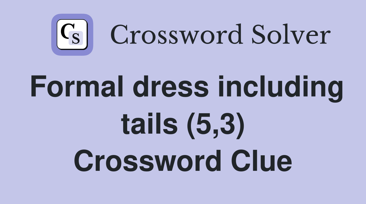 Formal dress including tails (5 3) Crossword Clue Answers Crossword