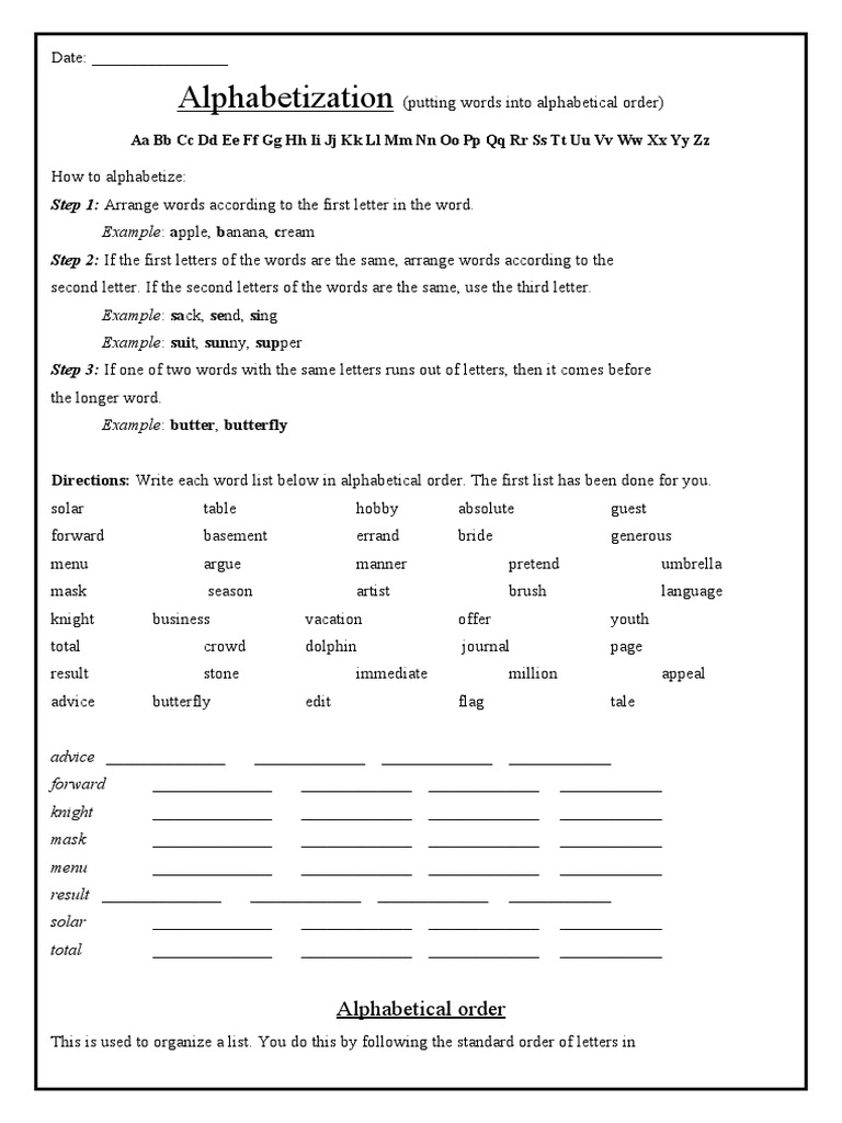 Alphabetizing Words PDF Writing Linguistics