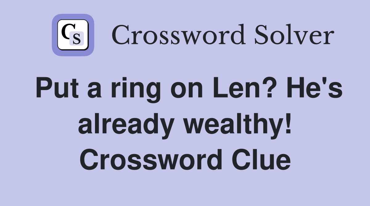 Put a ring on Len? He #39 s already wealthy Crossword Clue Answers