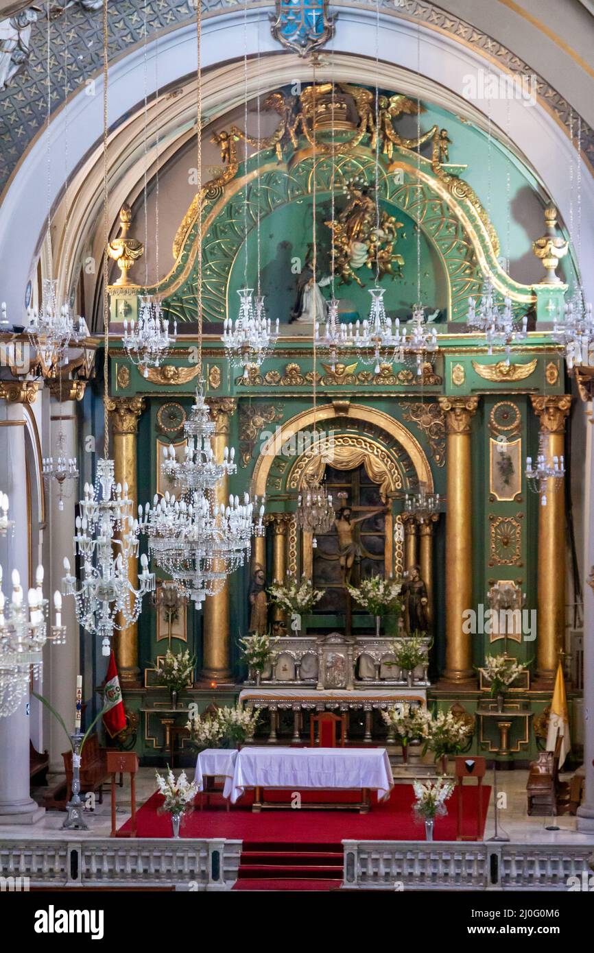 Vertical shot of one of the historical church altars in Lima Peru