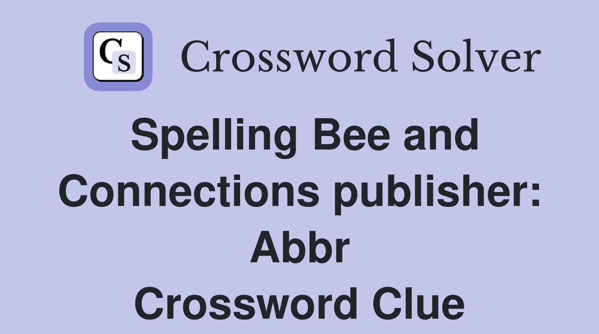 Spelling Bee and Connections publisher: Abbr Crossword Clue Answers