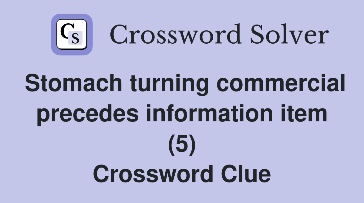 Stomach turning commercial precedes information item (5) Crossword