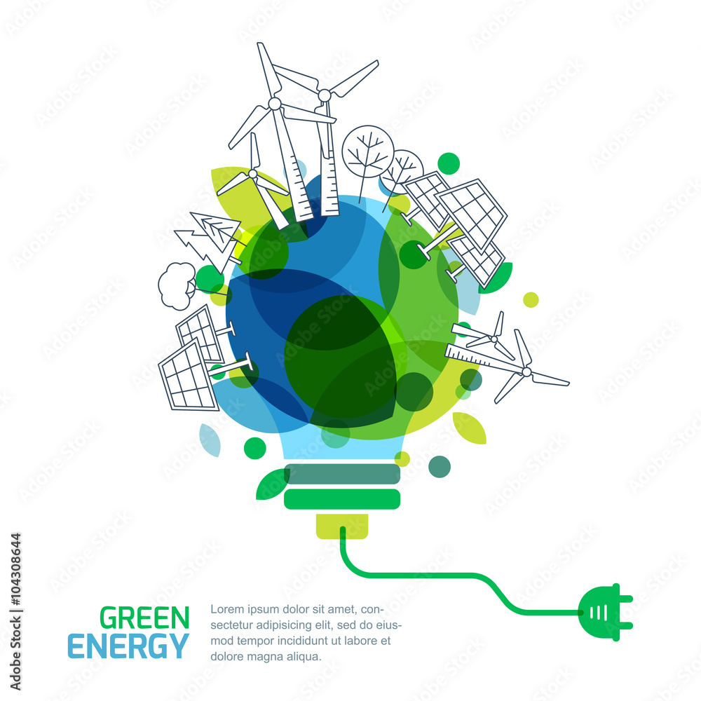 Isometric Green Energy Concept Alternative Wind and Solar Energy
