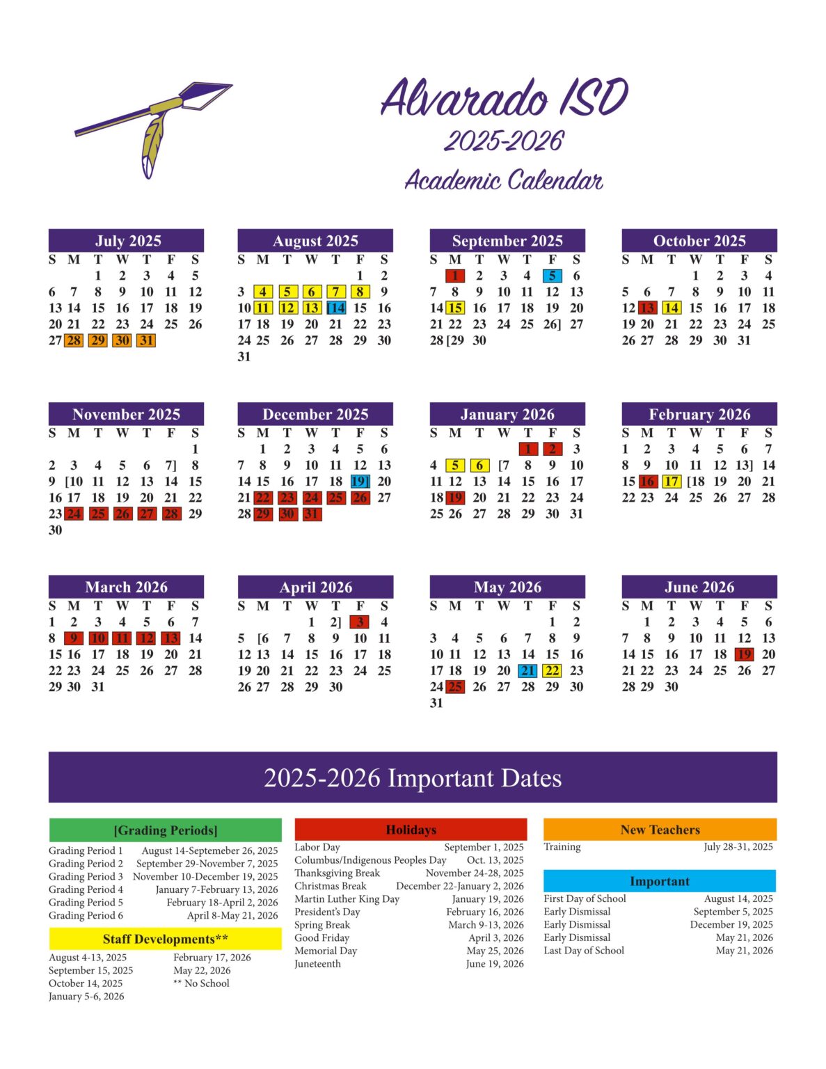 Alvarado ISD School Calendar 25 26 PDF EduCounty