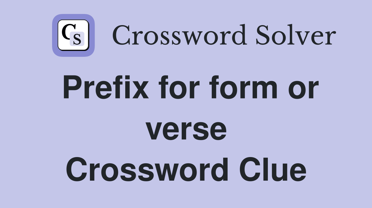 Prefix for form or verse Crossword Clue Answers Crossword Solver