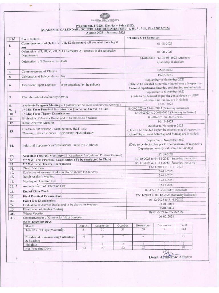 Academic Calender Poornayu Ayurved Chikitsalaya Evam Anusandhan