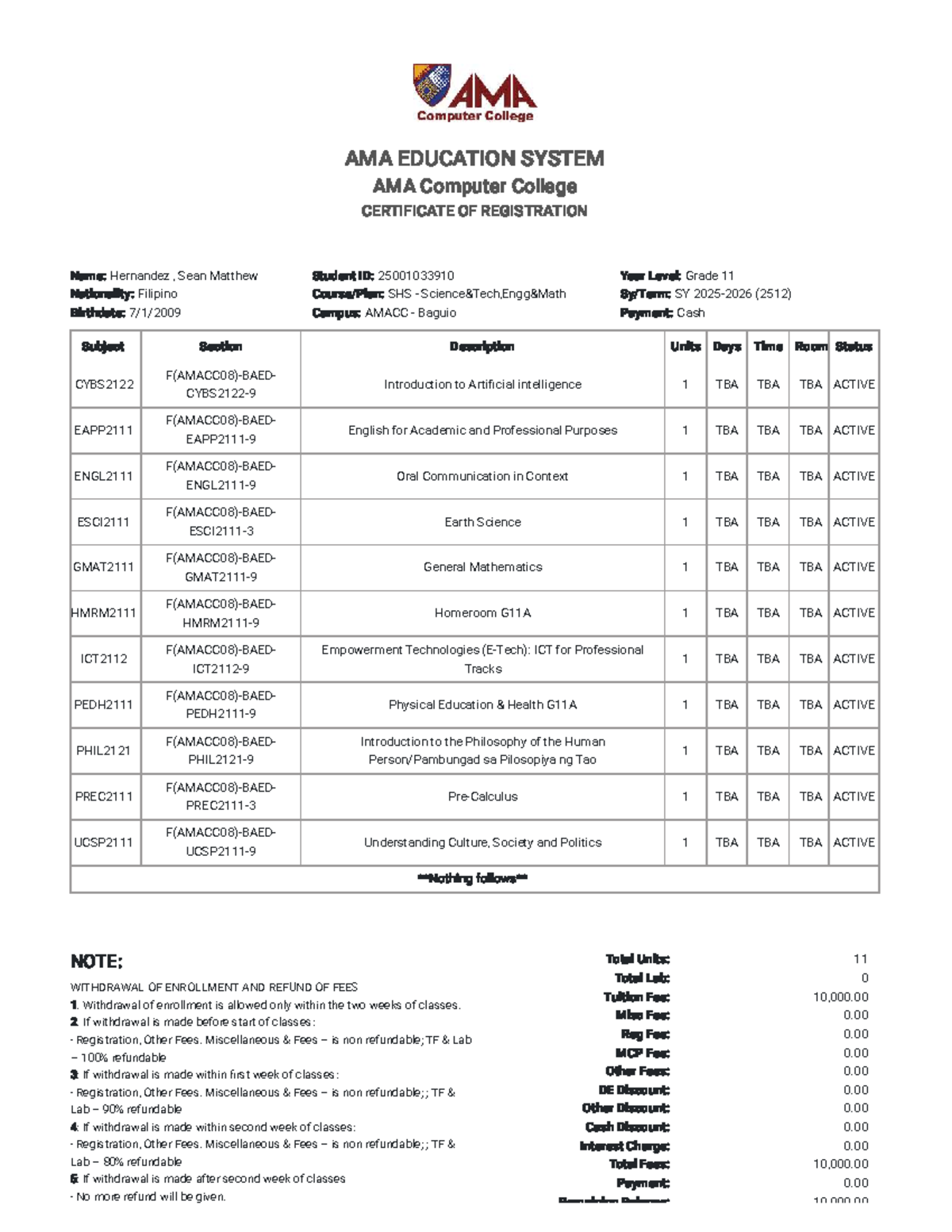 AMA Computer College SHS SY (2512) Student Assessment Document Studocu