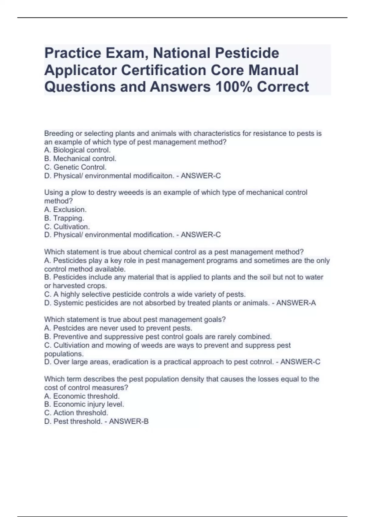Practice Exam National Pesticide Applicator Certification Core Manual