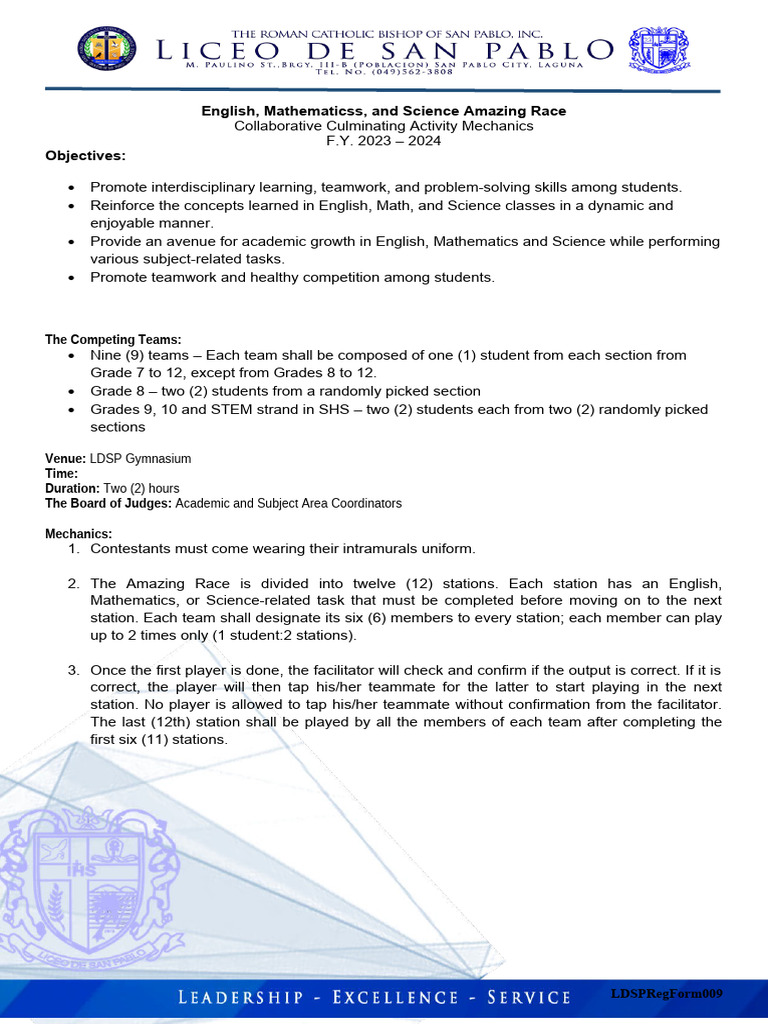 Final Mechanics ENGLISH MATH SCIENCE Amazing Race PDF Crossword
