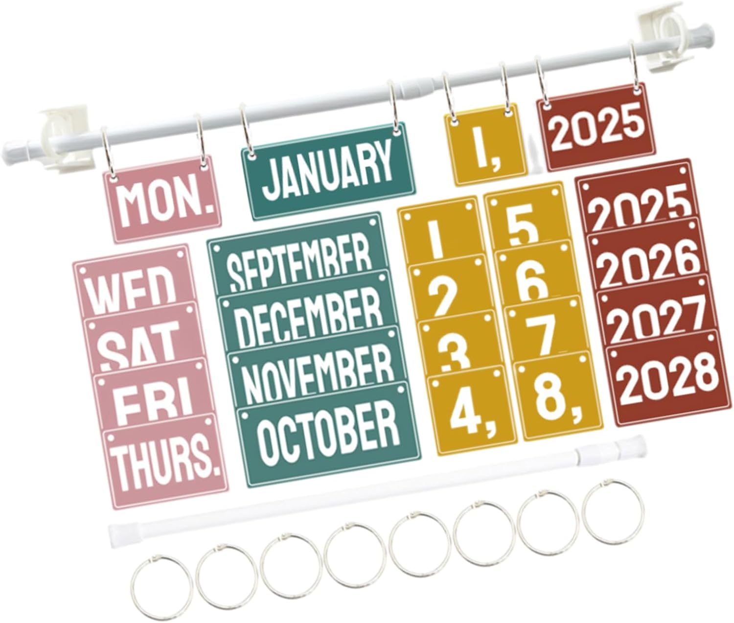 Flipping Calendar Set Includes Telescoping Holder Rod 54 Date Card