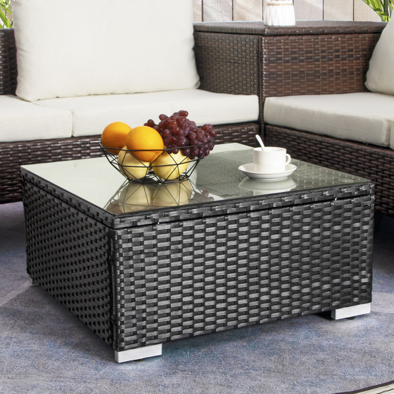 Orren Ellis Forough Glass Outdoor Coffee Table Reviews Wayfair